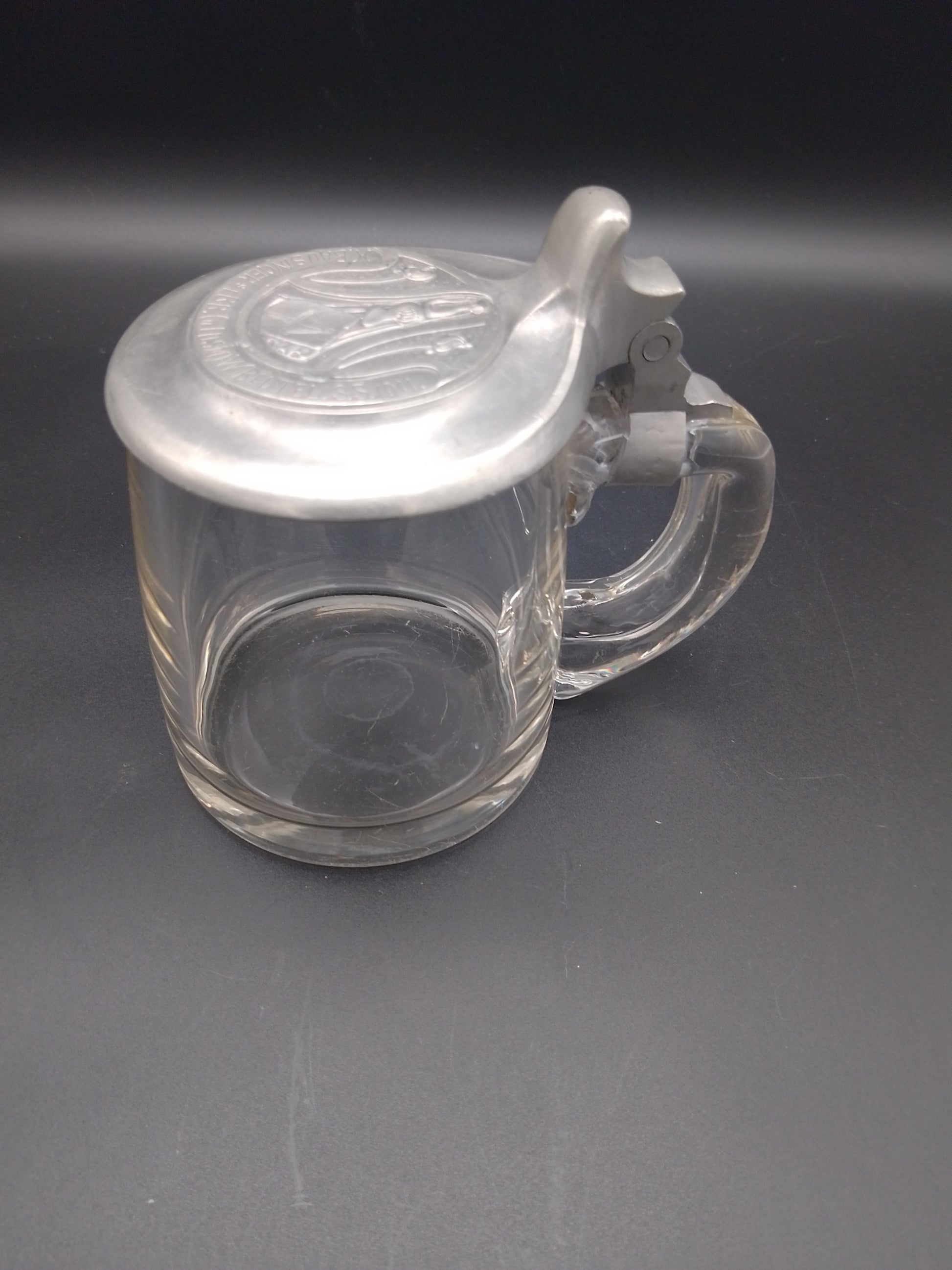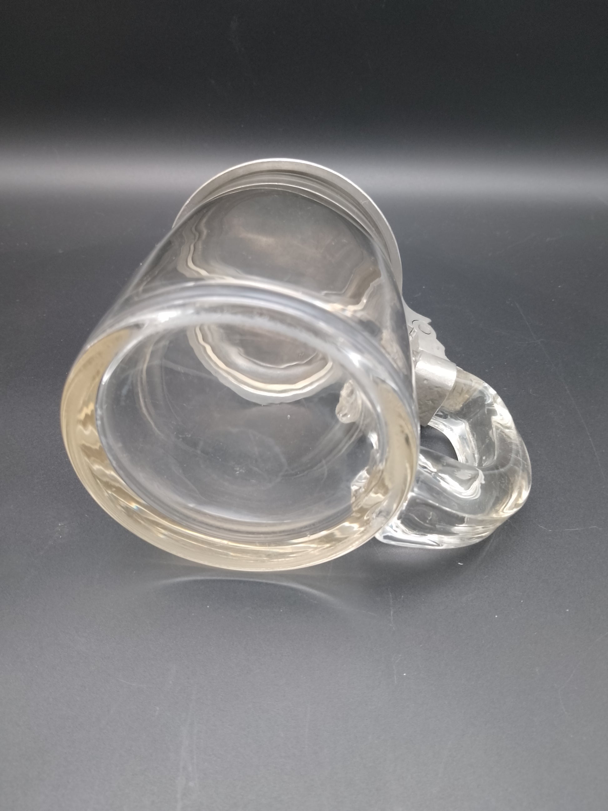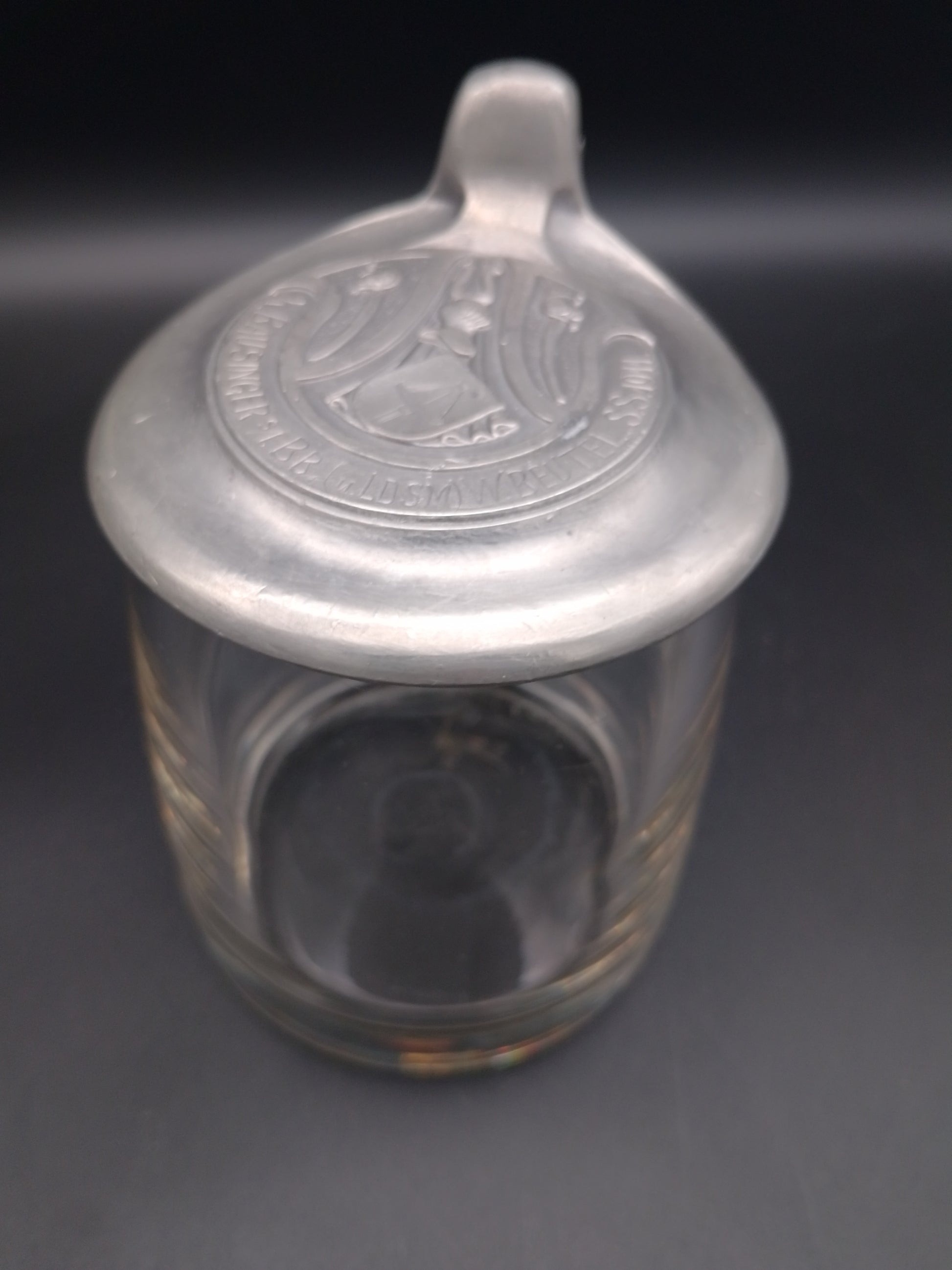 Studentika Glas Bierkrug mit Zinndeckel aus dem Jugendstil
